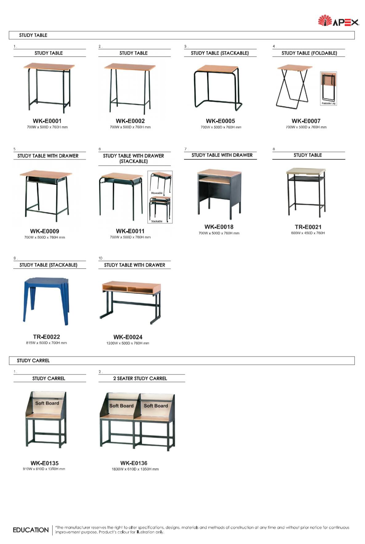 Consist of Table, Carrel, Chair, Shelf, Rack & Board