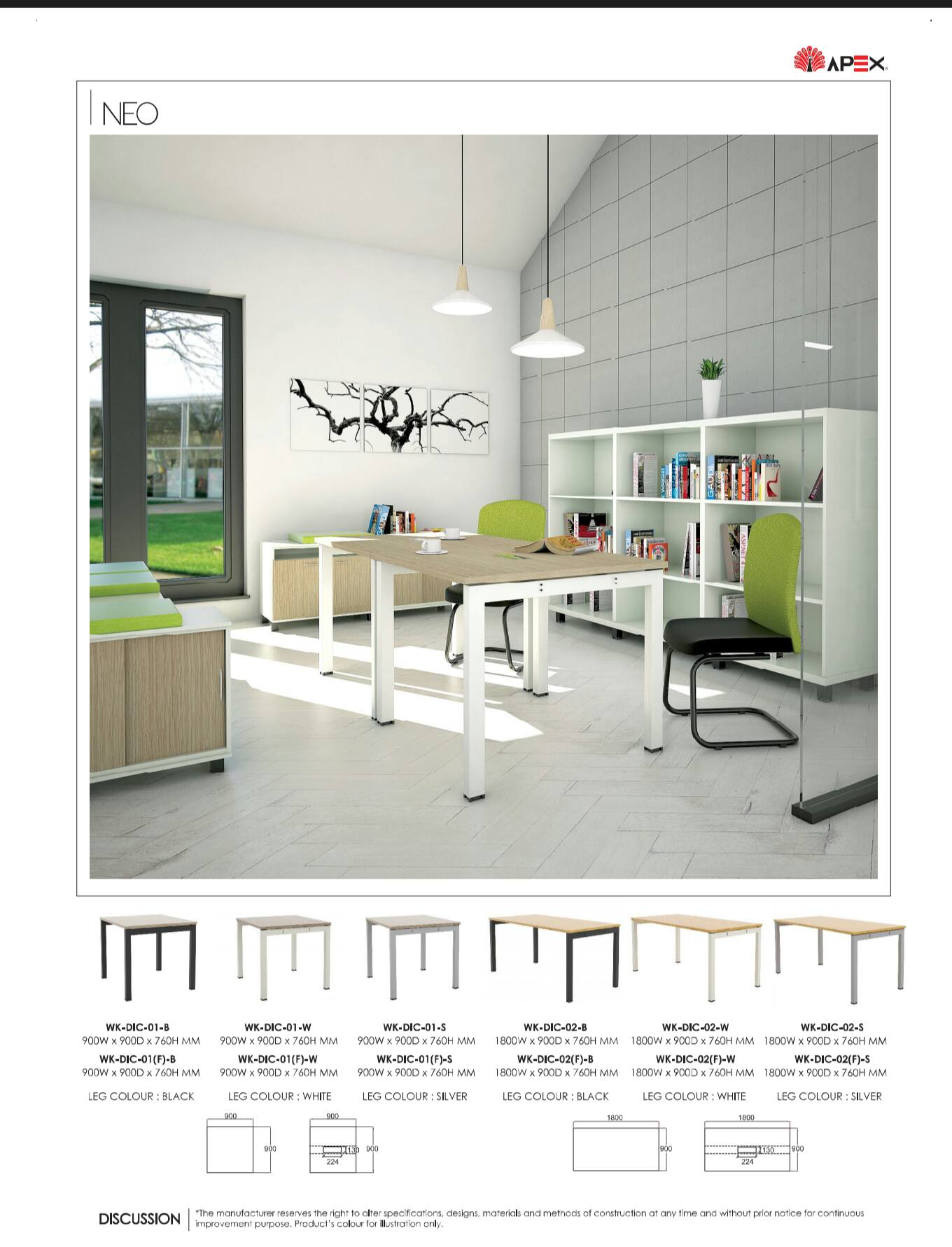 NEO Tables create desirable yet functional spaces with their clean and contemporary offerings. Round, rectangular, or oval shapes let you craft the ideal cafe, conference, or office space that provides function and form. The Steel base standard in white gloss and table tops available laminate chipboard with variation of colors.