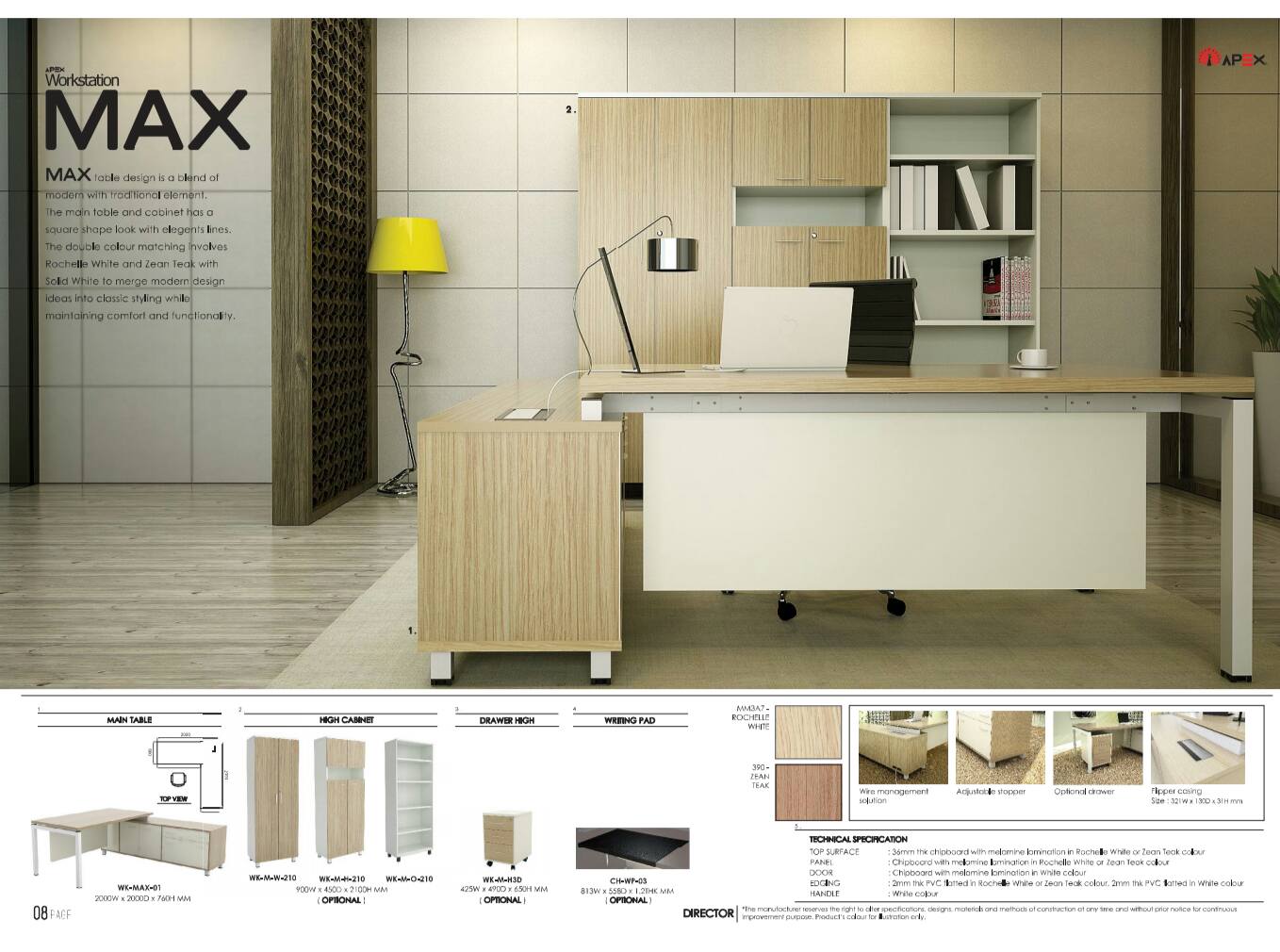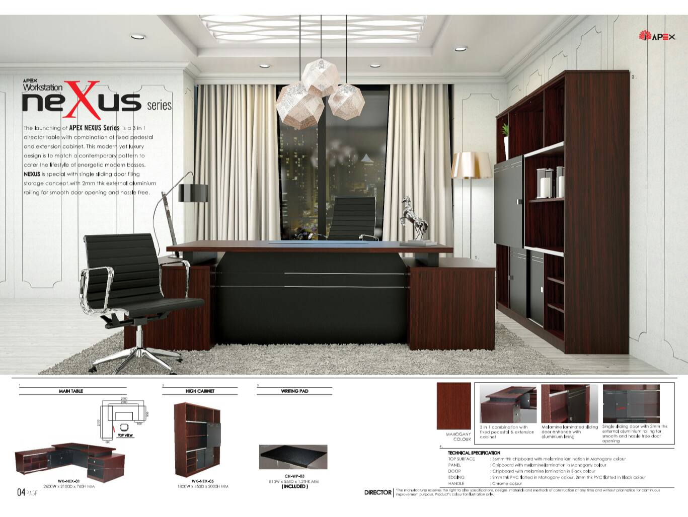 The new launching of APEX NEXUS TABLE, is a 3 in 1 director table with combination of fixed pedestal and extension cabinet. This modern yet luxury design is to match a contemporary pattern to cater the lifestyle of energetic modern bosses.