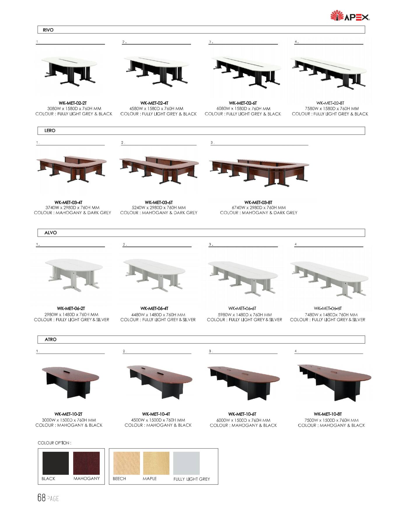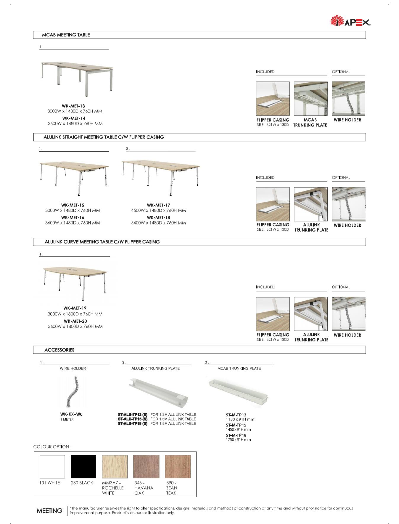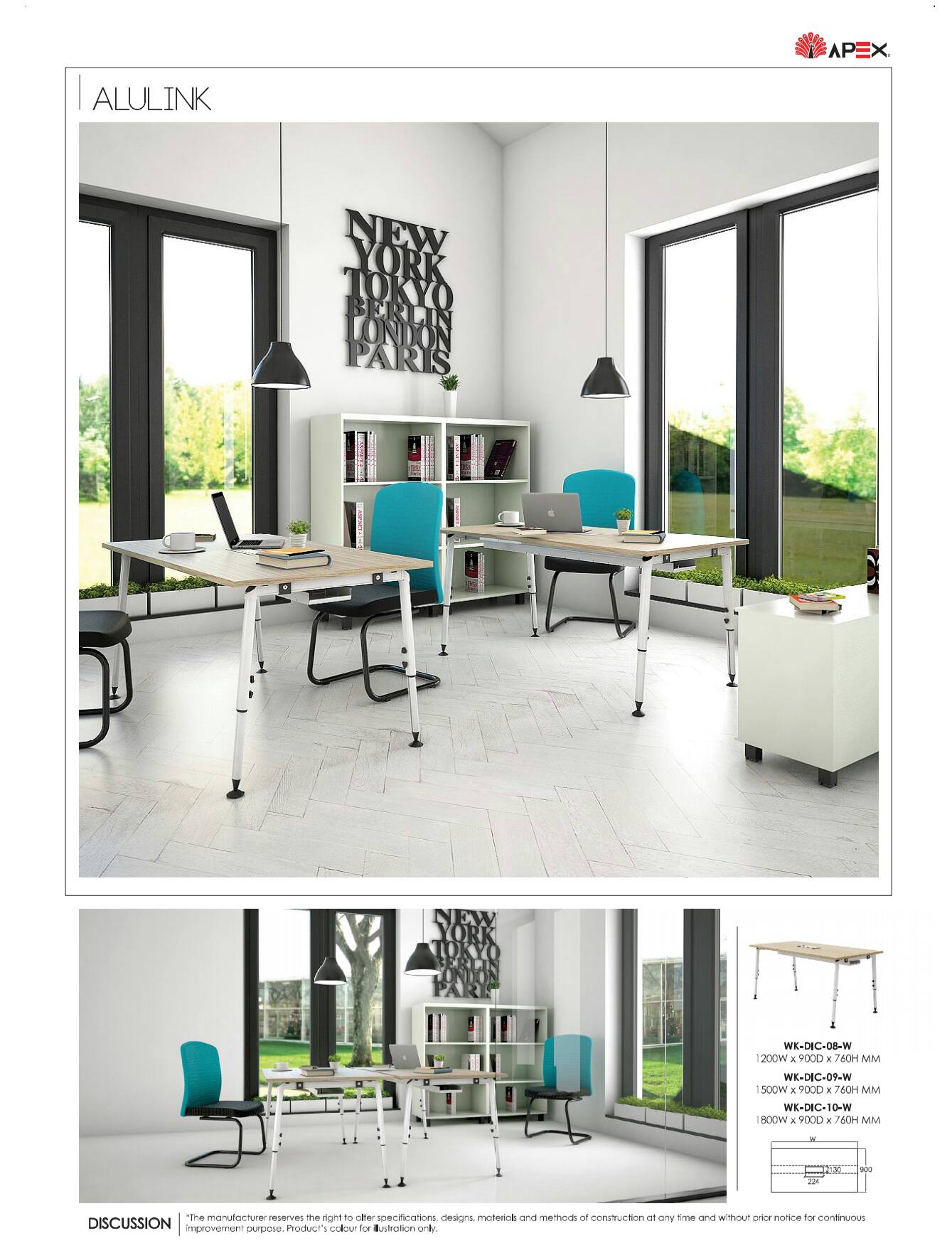 The Steel base standard in white gloss, black gloss, and silver color and table tops available laminate chipboard with variation of colors.